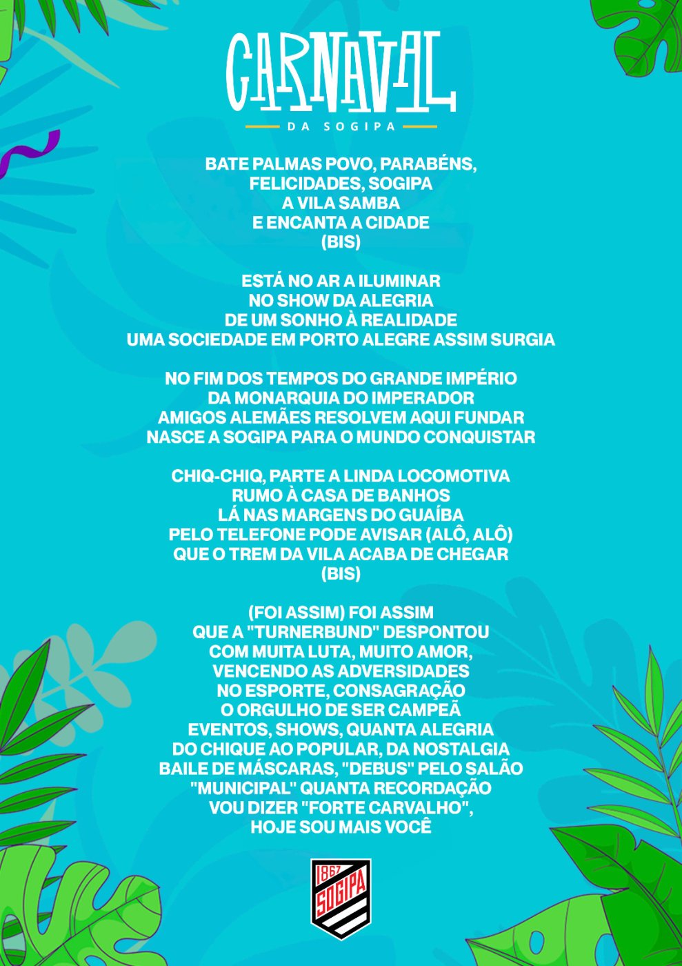 União da Vila do IAPI vai tocar o samba-enredo em homenagem a Sogipa, durante o aquece de Carnaval!