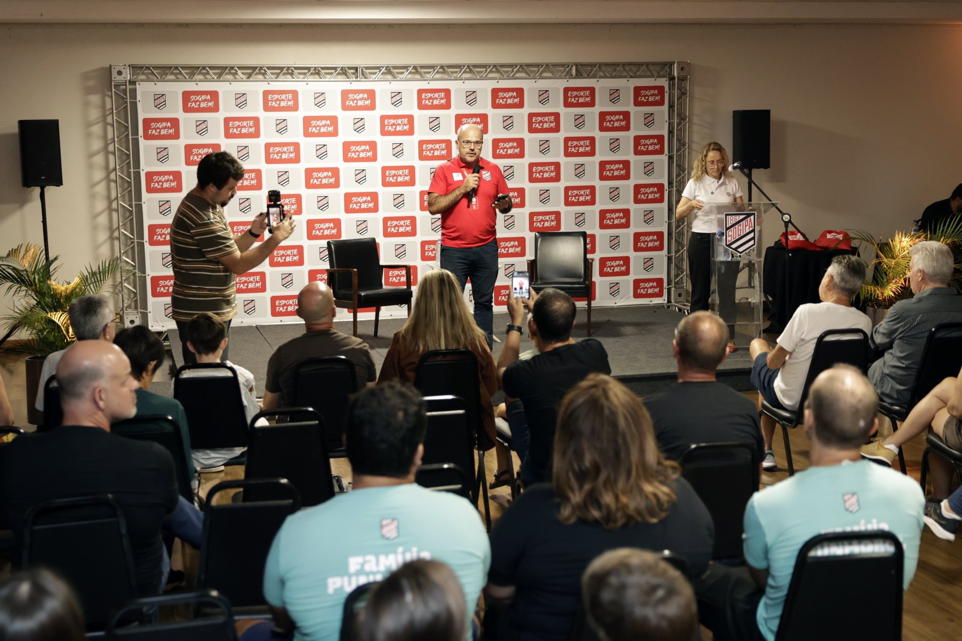 A noite de 20 de março foi marcada por reflexão, aprendizado e inspiração no Salão Hannover. Promovido pela pasta esportiva da Sogipa, o evento ‘Além do Jogo’ reuniu centenas de associados, atletas e alunos das Escolas Esportivas em um encontro que evidenciou o impacto do esporte na formação humana. O evento também serviu para o presidente da Sogipa, Marcelo Bervian, e o vice de esportes, Jorge Teixeira, apresentarem nos novos diretores adjuntos e os novos diretores de departamento.